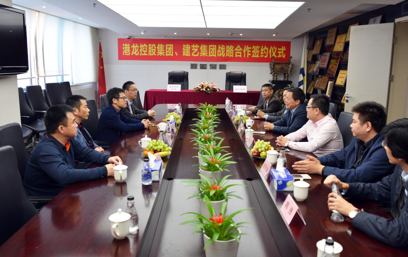 建藝集團與港龍控股集團相關領導在會議室進行會談