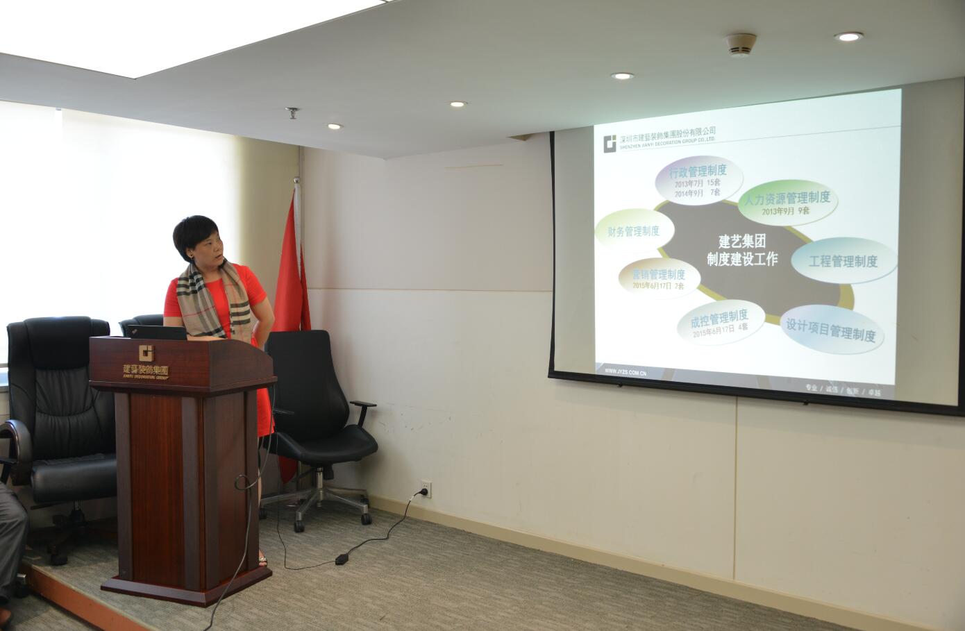 企業管理制度是實現企業目標的有力措施和手段。當前,建藝集團正處在高速發展期,特別是在2015年,集團引進了大批高素質人才,如何快速地讓這些新員工們及時了解公司各項規章制度,并進一步在全集團范圍內規范和落實企業各項管理制度,繼而打造一支高效率的企業團隊,就成為了擺在當下企業發展進程中最迫切也是最急需解決的問題之一。10月29日下午,經過精心的籌備與醞釀,主題為“公司行政管理制度”的宣講活動在集團會議室如期舉行,共有來自集團總部的四十多名員工參加了本次宣講。