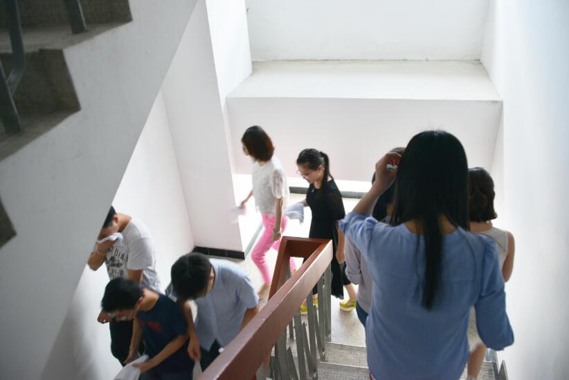 建藝集團員工在有序的從安全通道撤離大廈