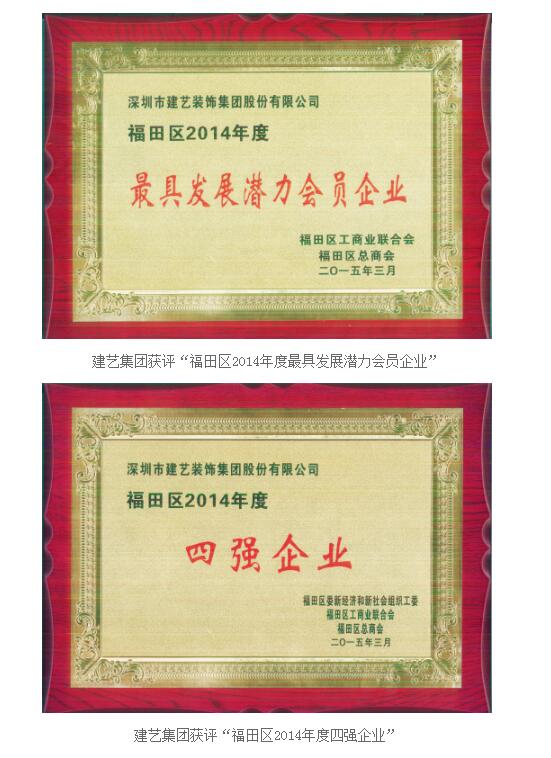 建藝集團喜獲福田區工商聯(總商會)“2014年度最具發展潛力會員企業”、“2014年度四強企業”榮譽