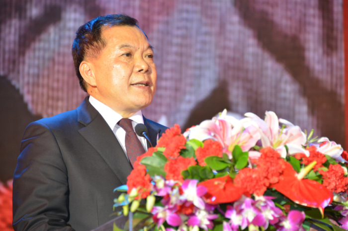 建藝集團董事長兼總裁劉海云發表熱情洋溢的講話