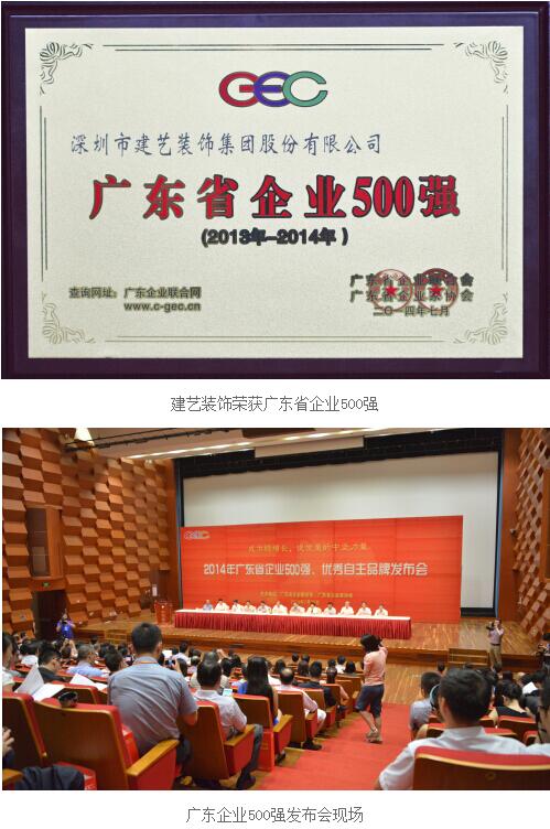 建藝集團榮膺“2014年廣東省企業五百強”