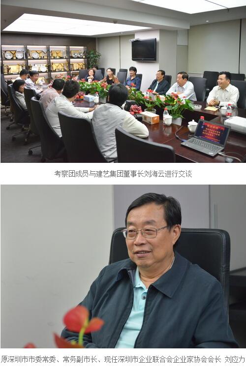 近日,深圳市原市委常委、常務副市長、現任深圳市企業聯合會/企業家協會(以下簡稱深企聯)會長劉應力及深企聯常務副會長王志國等領導同4月赴印度、尼泊爾考察團成員一起到訪建藝集團總部。劉海云董事長熱情迎接了到訪領導及成員,并向考察團成員介紹了建藝集團發展情況。期間,考察團成員們在劉海云董事長的帶領下,參觀了建藝集團機關和設計研究院。