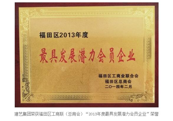 建藝集團喜獲福田區工商聯(總商會)“2013年度最具發展潛力會員企業”榮譽
