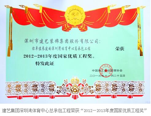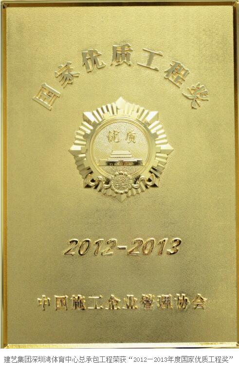 建藝集團深圳灣體育中心總承包工程喜獲“2012-2013年度國家優質工程獎”