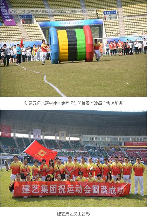 在此次企業運動會中,建藝集團組織總部三十多名員工參加了拔河、趣味接力、動感五環3個項目。在趣味接力比賽中,建藝運動員發揚努力拼搏、團結協作精神,啦啦隊努力加油、獻計獻策,最終在比賽中取得了第六名的好成績;而在有著號稱“滾筒洗衣機”的動感五環比賽中,建藝集團代表隊制定了良好的對策,在兼顧速度與穩定的前提下,五環兩邊、中間與里面的選手齊心協力,推動五環飛速前進,以優異成績完成了比賽。