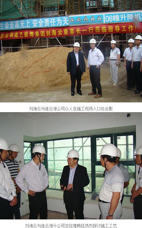 2013年6月25日建藝集團董事長劉海云親臨江蘇連云港恒大名都項目現場視察。在連云港公司總經理韓鈺以及本項目部全體管理人員陪同下劉董事長視察了現場內外施工作業區,韓鈺總經理對當前施工情況做了詳細的匯報。劉海云董事長仔細地向項目部負責人詢問了施工的進度計劃及實施情況并對本項目提出了更高的要求,在了解了施工過程中的種種困難之后,劉海云董事長對連云港公司克服困難的能力、施工質量及施工進度提出了表揚。該項目在韓鈺總經理及全體管理人員的共同努力下贏得了甲方的贊譽和良好的評價。