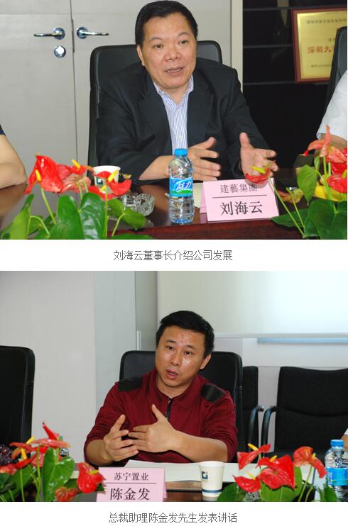 在會談中,劉董事長介紹了建藝集團近況和未來發展前景,以及近年與蘇寧集團合作情況,并期待雙方能夠繼續開拓互利共贏的雙邊關系。陳總助肯定了雙方共同取得的成績,并對建藝集團的各方面情況進行廣泛深入的了解。周總助也就行業的發展趨勢和運作管理提出了寶貴的意見和建議。與會人員還對嶄新時期的經濟發展形勢進行了充分交流和探討。最后,雙方就目前戰略合作的范圍拓展和模式創新達成了統一意向。