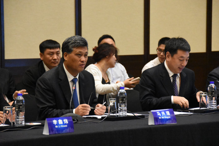 簽約儀式結束后,馬興瑞書記帶領政府部門代表及深圳企業代表團來到VIP會議廳,舉行深圳企業“走出去”座談會。座談會伊始,馬書記即表明希望深圳企業積極響應國家“一帶一路”號召,制定企業“走出去”發展戰略,深圳市政府必將全力支持深圳企業發展,尤其是行業前十企業。劉海云董事長作為深圳企業家杰出代表第一個發言,當即表示建藝集團作為深圳證券交易所A股上市企業、中國建筑裝飾百強前十名企業、廣東省500強企業及深圳市百強企業,將當仁不讓地響應國家號召,跟隨國家“一帶一路”沿線,尋找商機。劉董還就其它問題同馬興瑞書記進行了深入友好的交談。