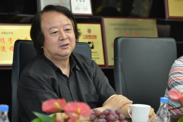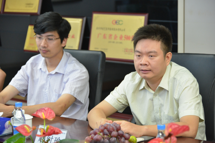 鹿蘇川總經理(左)在會上聽取關于建藝集團的介紹