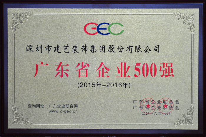 8月3日,廣東省企業聯合會、廣東省企業家協會排序發布2016年廣東省企業500強榜單。借助上市的東風,建藝集團憑借雄厚的企業實力與強大的行業品牌影響力,連續第八年躋身廣東省企業500強,繼續在廣東省企業界發揚行業表率的先鋒模范作用,同時也有力地推動了建藝集團向更高的發展目標邁進!