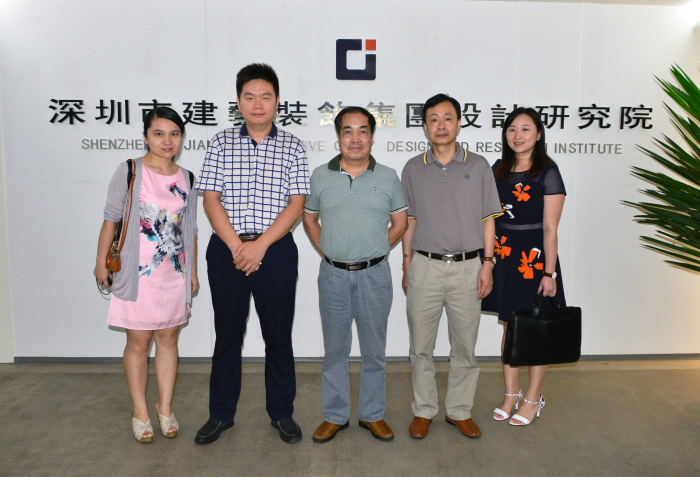劉鎮河會長(右二)等在趙紂瑜副總裁的帶領下參觀建藝集團設計研究院