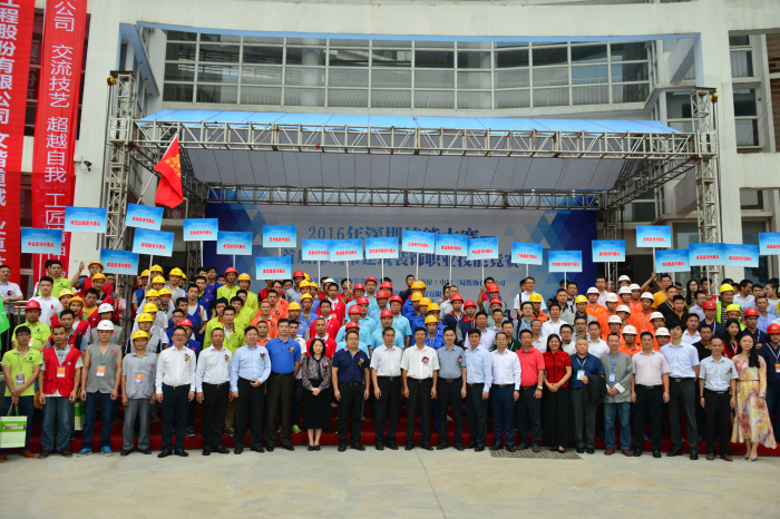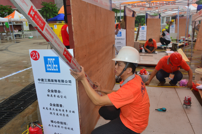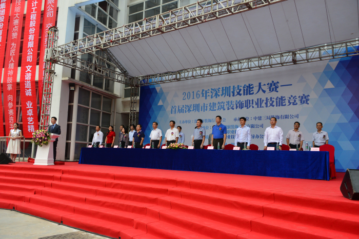 11月19日,由深圳市裝飾行業協會主辦、以“傳承工匠精神,打造深圳質量”為主題的“2016年深圳技能大賽暨首屆深圳市建筑裝飾職業技能競賽”決賽在廣東新安職業技術學院舉行。深圳市社會組織管理局副局長孫景明、深裝協高剛會長等嘉賓,以及來自深圳市建筑裝飾行業24家企業的80名技術工人參加了本次決賽。建藝集團工程管理中心韓佛總監作為嘉賓出席,陳計明、郭勇剛等四位員工作為選手參加決賽。