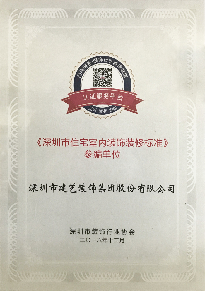 建藝集團入選《深圳市住宅室內裝飾裝修標準》參編單位