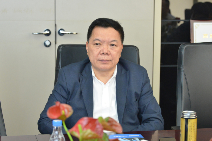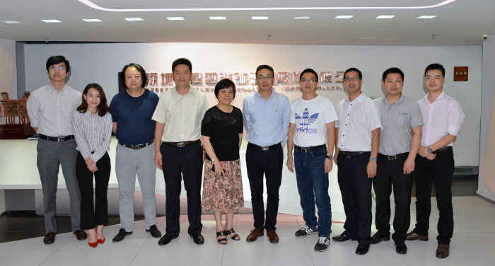 建藝集團董事長兼總裁劉海云聽取皓峰通訊毛孝鹍總經理介紹
