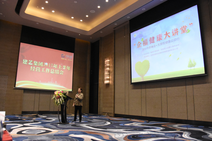 在會議期間,建藝集團(tuán)戰(zhàn)略合作伙伴、兄弟公司——深圳天基權(quán)健康科技集團(tuán)股份有限公司也派出代表出席會議,并由醫(yī)學(xué)專家姜麗婭教授為建藝同仁帶來一場直觀而生動的健康講座,贏得與會領(lǐng)導(dǎo)的熱情掌聲。