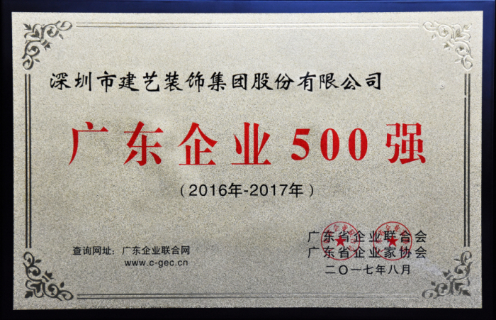 在入選的深圳企業陣營中,作為建筑裝飾行業首屈一指的標桿企業,建藝集團自從成功登陸資本市場加快多元化發展步伐以來,以高速穩健的發展狀態昂首前行,榮獲國家高新技術企業認證,并蟬聯廣東省優秀企業、廣東省誠信示范企業、中國建筑裝飾行業百強企業前十名等。本次蟬聯“廣東企業500強”并榮獲“廣東民營企業100強”,一方面證明建藝集團的發展成績獲得了各方肯定,企業綜合實力繼續穩健增強;另一方面,也表現了建藝集團成功上市以來,在劉海云董事長的有力領導下,企業品牌信譽度及影響力得到了極大提升,在業界乃至全省企業界的良好口碑得到了更充分的認可,企業發展速度可謂是有目共睹。
