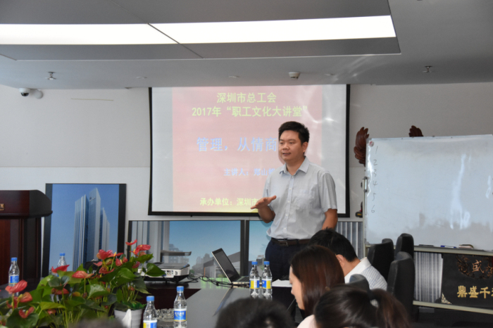 為不斷提高員工的自我管理能力,進一步提升員工工作效率和企業整體管理水平,增強企業團隊的凝聚力和競爭力,8月15日下午,由集團人力資源部主辦的“2017年建藝學院‘職工文化大講堂’培訓”在19樓會議室如期舉行。本次培訓的主題為“管理,從情商開始”,由深圳市總工會的政府質量獎評審專家、卓越績效(中國)輔導專家鄭山姆講師擔任主講,集團副總裁趙紂瑜擔任培訓開場嘉賓。