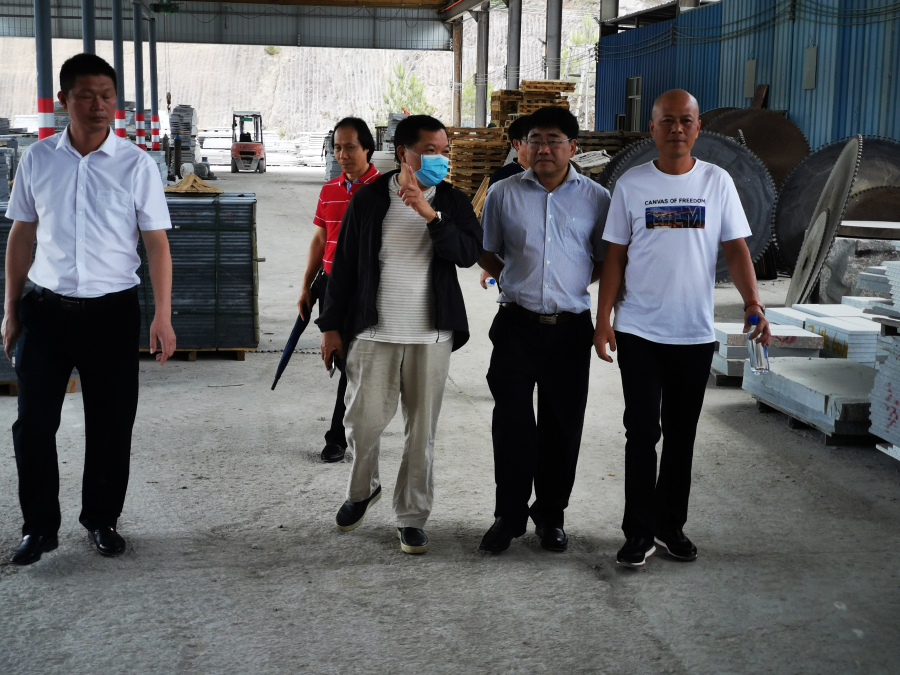 劉海云董事長與林忠云常委等領導在廣東建藝石材廠區
