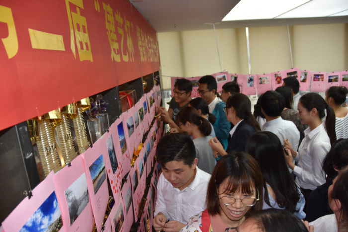 最終,經過現場投票評比,決出了“手機組”和“單反組”的一等獎、二等獎、三等獎、優秀獎作品,共計18幅。在頒獎儀式上,頒獎嘉賓——集團副總裁趙紂瑜再次對本次攝影大賽活動表示贊揚,他表示:集團給員工們提供了一個施展才藝的平臺,希望大家珍惜,期待今后看到更多有才藝的員工在建藝平臺展示自我。頒獎結束后,趙總還和獲獎員工合影留念。