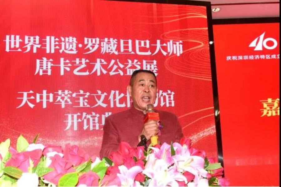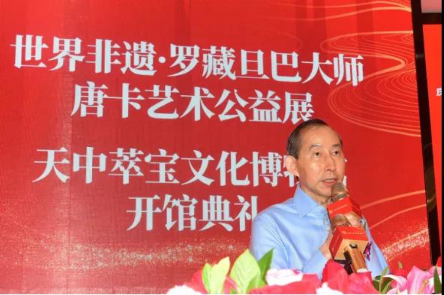 8月16日上午,由中國國際文化傳播中心指導的天中萃寶文化博物館開館典禮及非遺世界?羅藏旦巴唐卡藝術公益展在深圳啟幕。中國國際文化傳播中心執行主席龍宇翔出席并致辭,建藝集團董事會主席劉海云出席并為博物館揭幕。