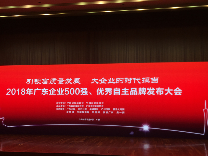 8月9日上午,以“引領高質量發展,大企業的時代擔當”為主題的2018年“廣東企業500強、優秀自主品牌發布大會”在廣州舉行。廣東省副省長陳良賢出席大會并向入圍廣東企業500強及優秀自主品牌的企業表示祝賀。