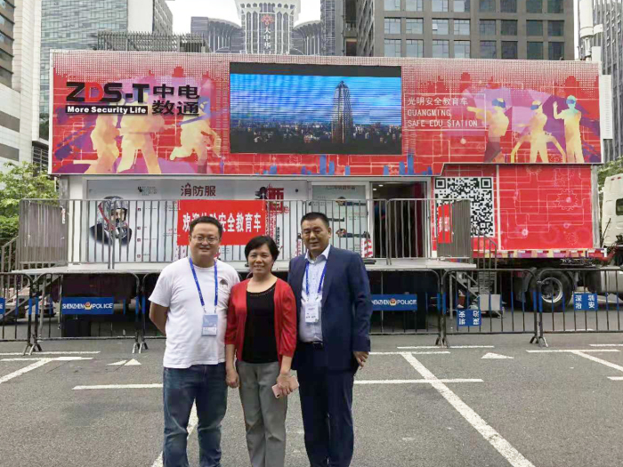 顏如珍副總裁、孫昀副總裁等在中電數(shù)通移動安全教育培訓(xùn)車前合影