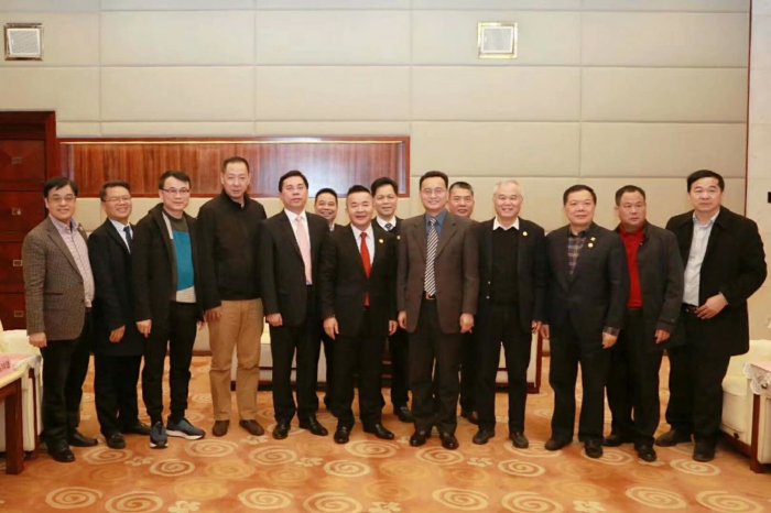梅州市委市政府領(lǐng)導(dǎo)與劉海云董事長(zhǎng)等廣東省客家商會(huì)代表團(tuán)成員合影