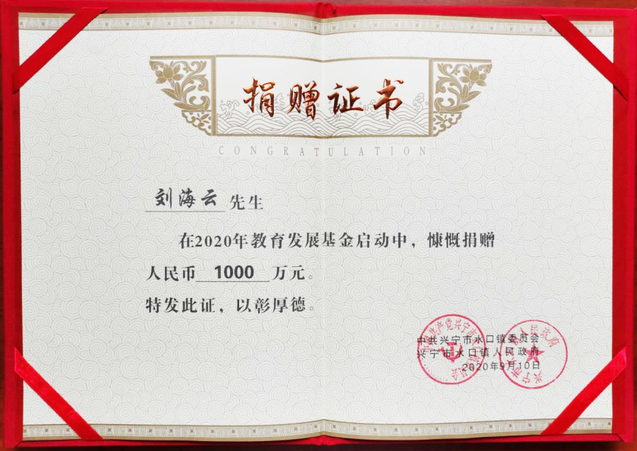 昨日,是第36個教師節(jié)。作為“廣東省教育強鎮(zhèn)”,興寧市水口鎮(zhèn)特別發(fā)布“表彰芳名榜”,向在2020年教育發(fā)展基金啟動中慷慨捐贈(認(rèn)捐)善款的廣大愛心鄉(xiāng)賢人士致謝。建藝集團、建藝控股董事會主席劉海云以身作則,首批響應(yīng)家鄉(xiāng)號召,帶頭認(rèn)捐1000萬元善款!這也是自2017年捐助水口中學(xué)教育強市200萬元后,劉海云又一次為家鄉(xiāng)教育事業(yè)發(fā)展傾注愛心。