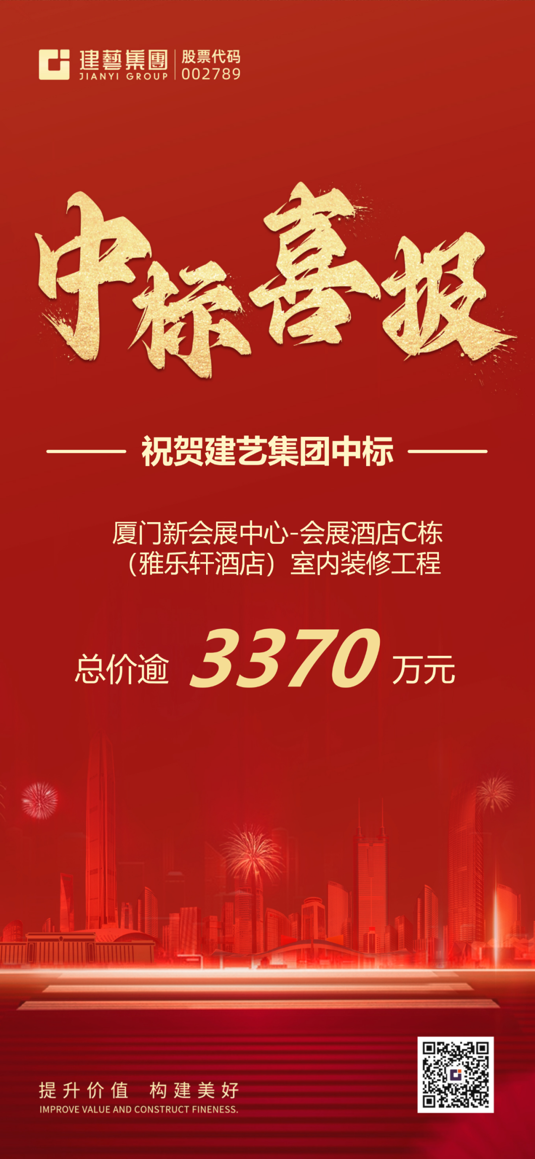 近期,深圳市建藝裝飾集團(tuán)股份有限公司及旗下子公司廣東建星建造集團(tuán)有限公司、廣東粵明綠能科技有限公司中標(biāo)捷報(bào)頻傳,接連中標(biāo)多項(xiàng)項(xiàng)目,總價(jià)逾1.03億元。