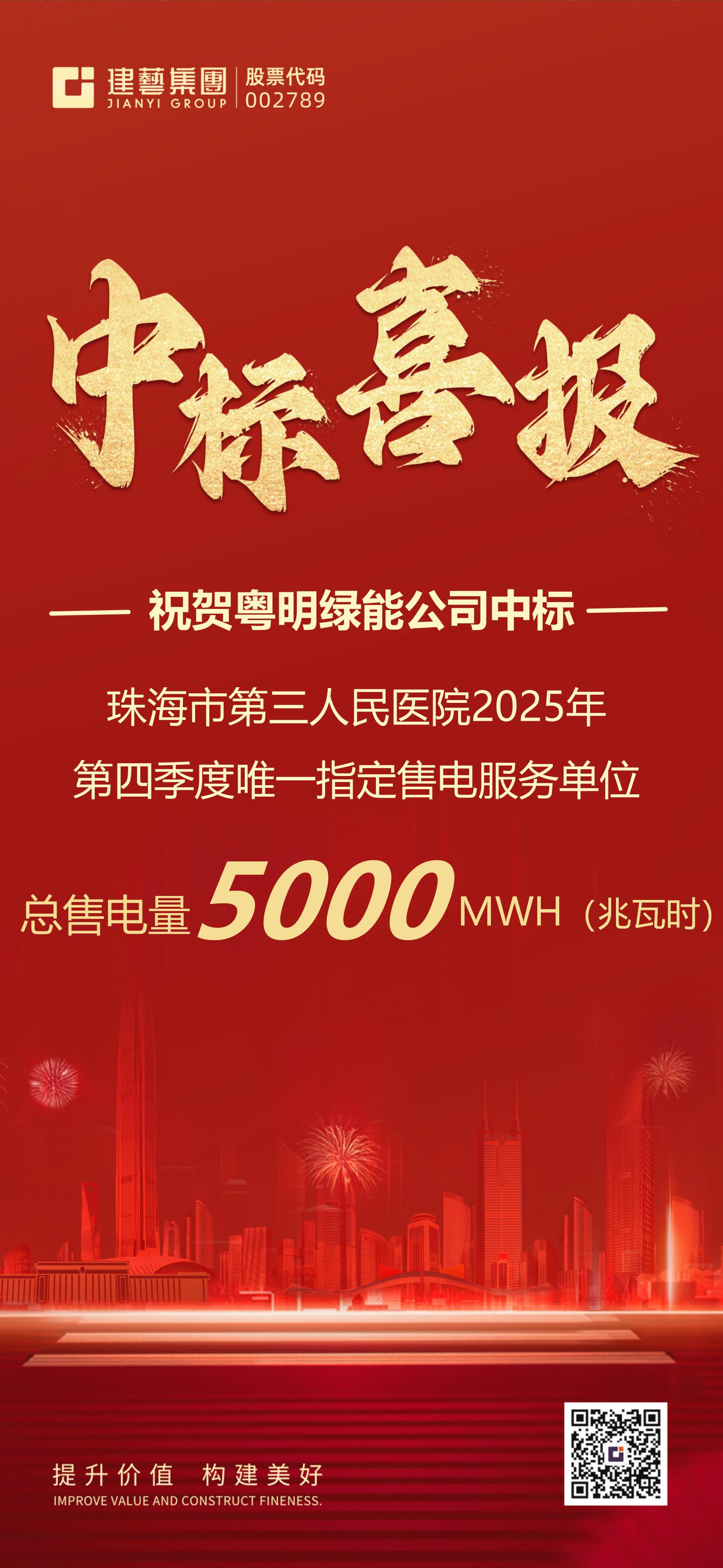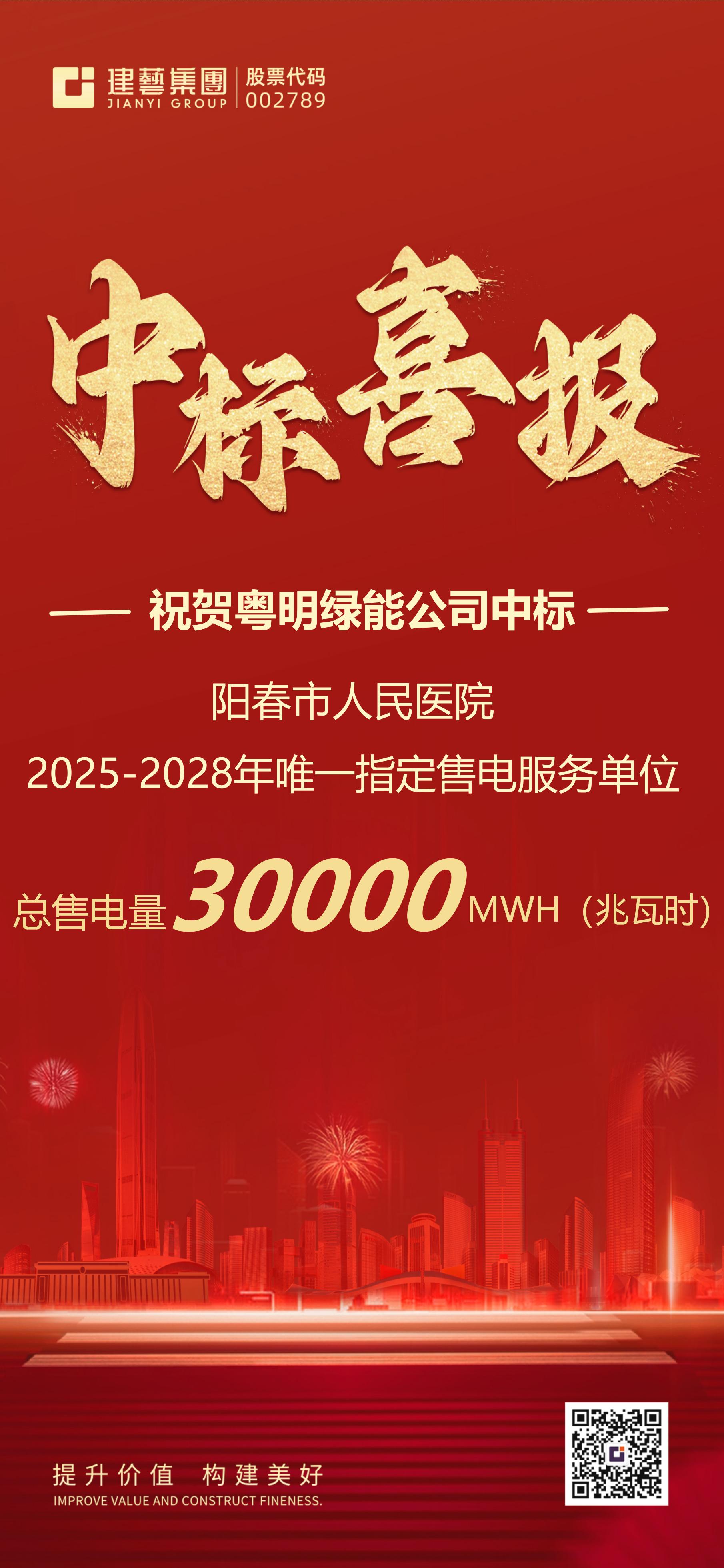 【喜報(bào)】建藝集團(tuán)旗下子公司粵明綠能接連中標(biāo)兩大醫(yī)院唯一指定售電服務(wù)單位,總售電量35000MWH(兆瓦時(shí))