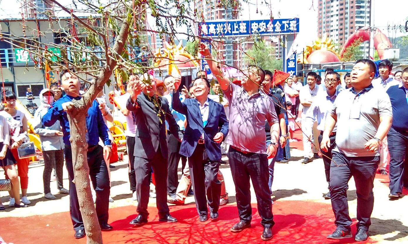 劉海云董事長(左三)等領導在慶典上拉索倫桿