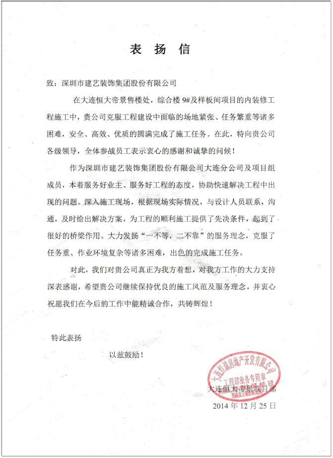 [下一篇]關(guān)于建藝集團(tuán)烏蘭浩特恒大綠洲項(xiàng)目部的表揚(yáng)信