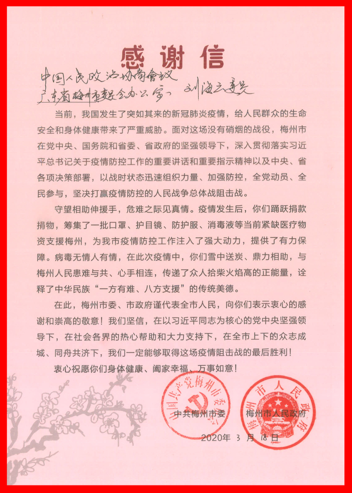 【戰疫情】心系梅州,攜手戰“疫”;眾志成城,贏取勝利