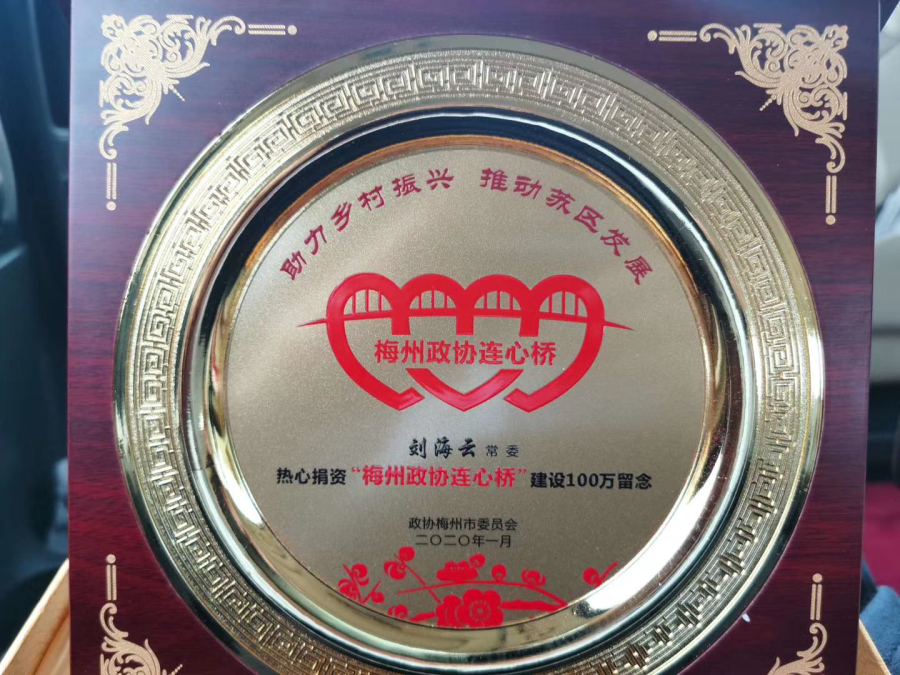 梅州政協(xié)連心橋捐資紀念牌——劉海云常委