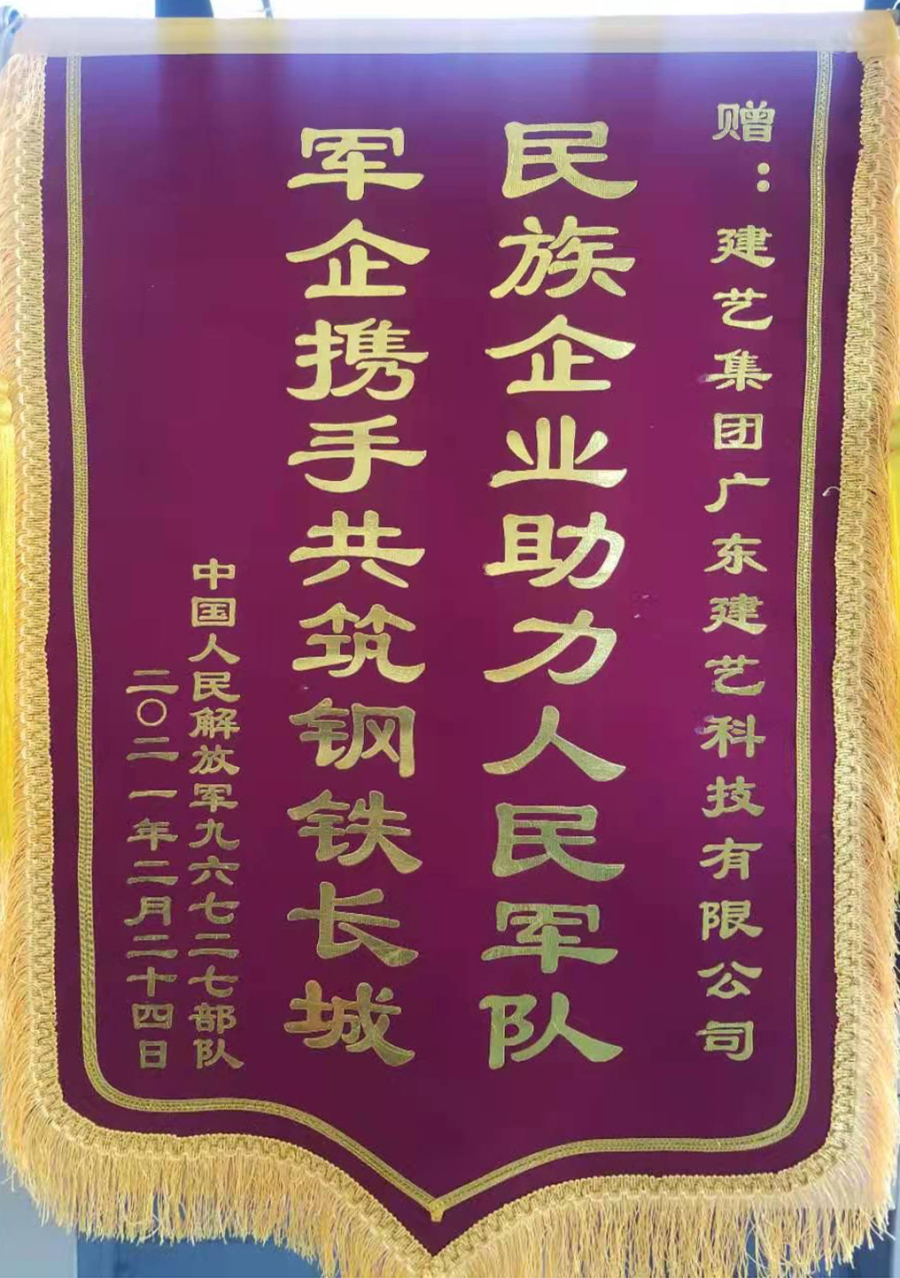 鑒于此,日前,在了解到中國人民解放軍九六七二七部隊春季演練需求后,建藝集團——廣東建藝科技產業園第一時間為部隊提供駐扎演練場地及必要服務,為人民軍隊提供完備的場地與配套服務,盡最大努力確保春季演練順利進行。鑒于建藝集團對部隊的大力支持與慷慨服務,部隊特別向建藝贈予“民族企業助力人民軍隊,軍企攜手共筑鋼鐵長城”錦旗,以示感謝。
