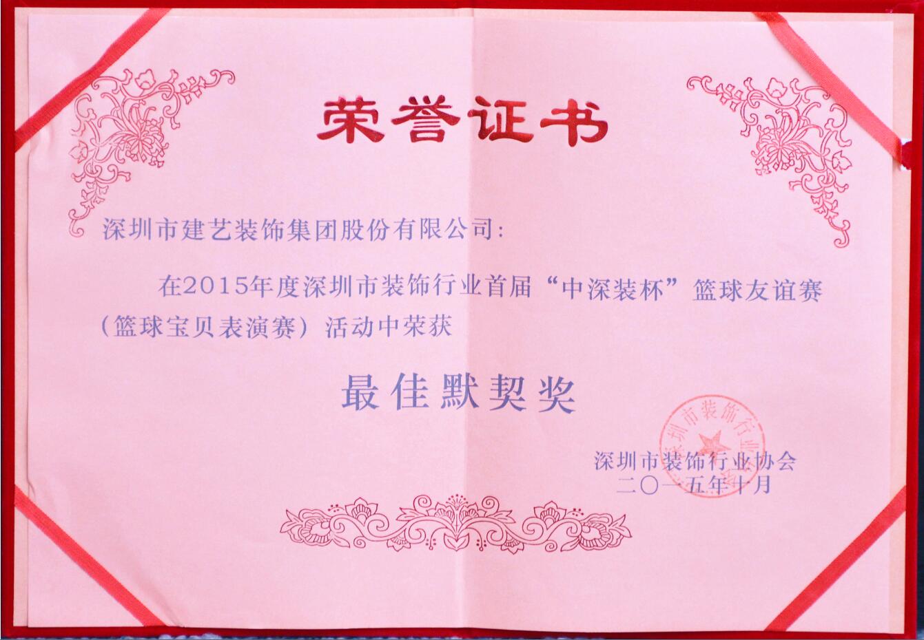 經(jīng)過近半個月時間的鏖戰(zhàn),2015深圳裝飾行業(yè)首屆“中深裝杯”籃球友誼賽于11月1日正式落下帷幕,建藝集團籃球隊和啦啦隊各有斬獲。籃球隊憑借出色的團隊意識,獲得了組委會頒發(fā)的“公平競賽獎”;籃球啦啦隊不負眾望,在多支參賽隊伍中脫穎而出,捧回了“籃球?qū)氊悺崩怖碴爤F體“最佳默契獎”。
