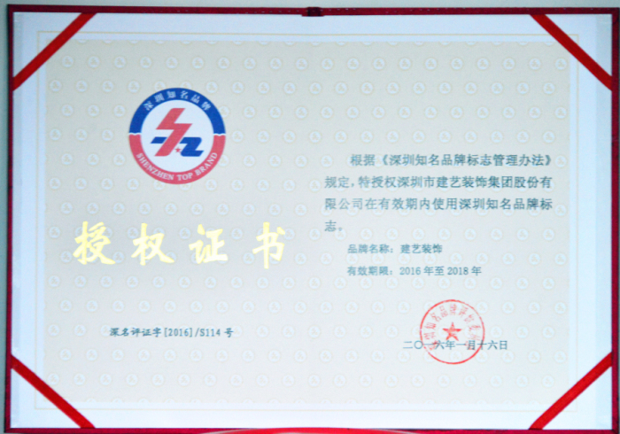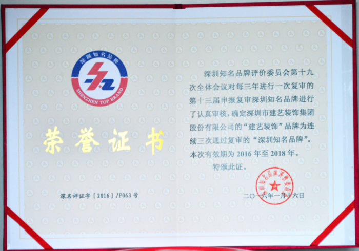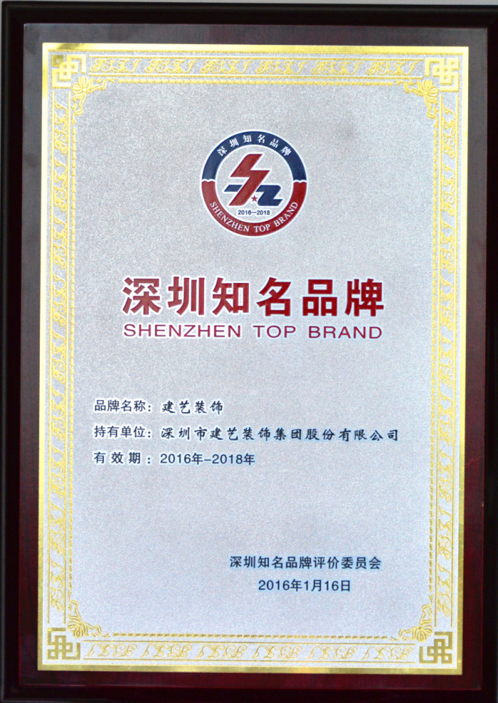 建藝集團榮獲第十三屆深圳知名品牌“風采獎”