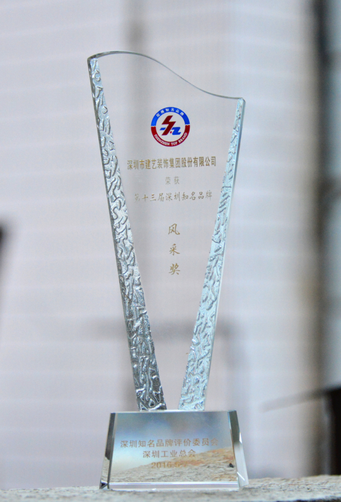 建藝集團榮獲的“第十三屆深圳知名品牌風采獎”獎杯