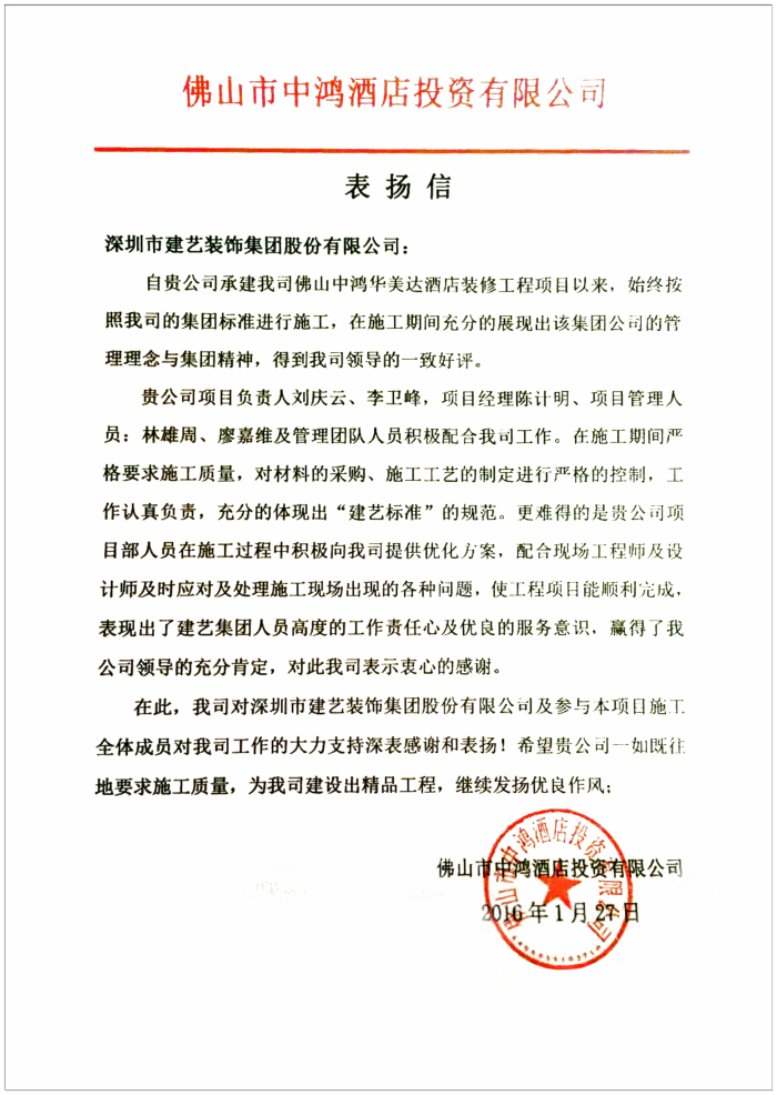 [下一篇]關于永州龍華華美達廣場酒店及財富廣場外幕墻工程的表揚信